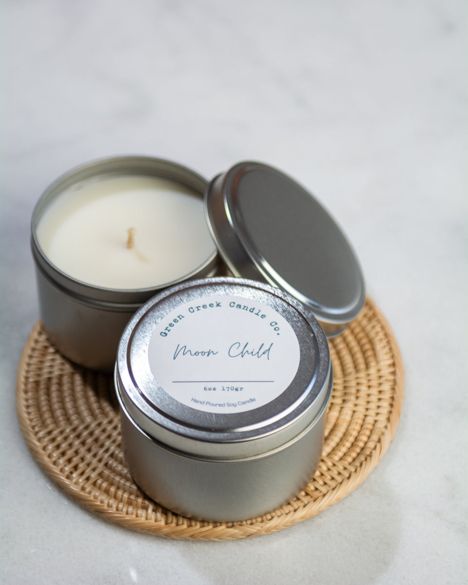 Nights spent gazing at the full moon and feelings of calmness encapsulate this candle. Spicy patchouli, amber, musk, and rose blend together to create a very mysterious, soothing candle.